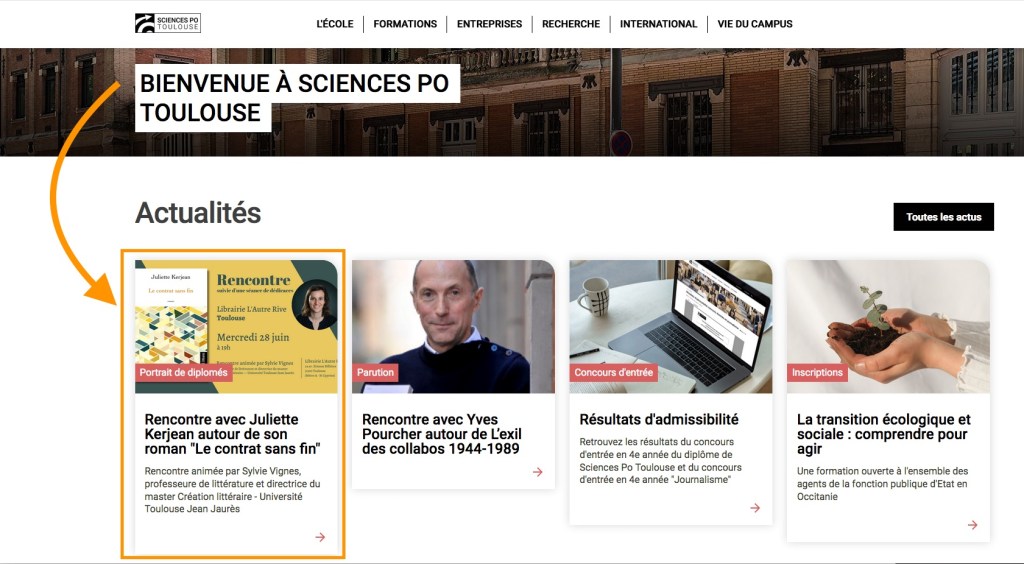 Aujourd’hui, j’ai eu le plaisir de voir que Sciences Po Toulouse avait mis en avant sur son site internet la rencontre du 28 juin prochain à la Librairie l’Autre Rive.