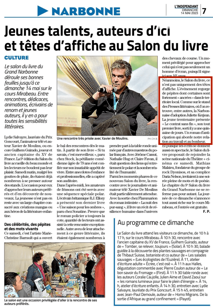 - Samedi 13 mai 2023 — Narbonne (11) — Salon du Livre du Grand Narbonne