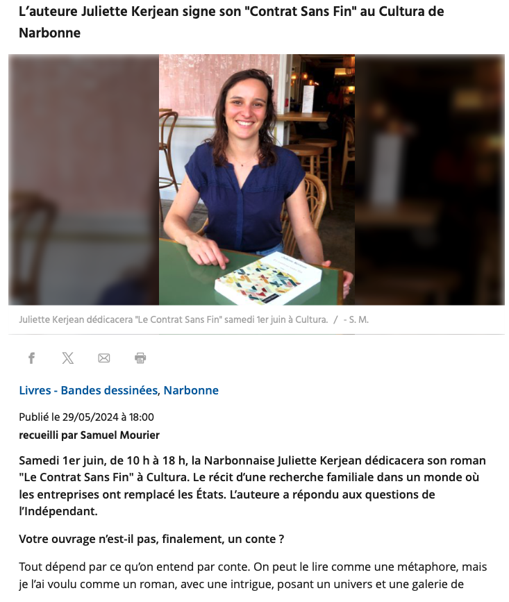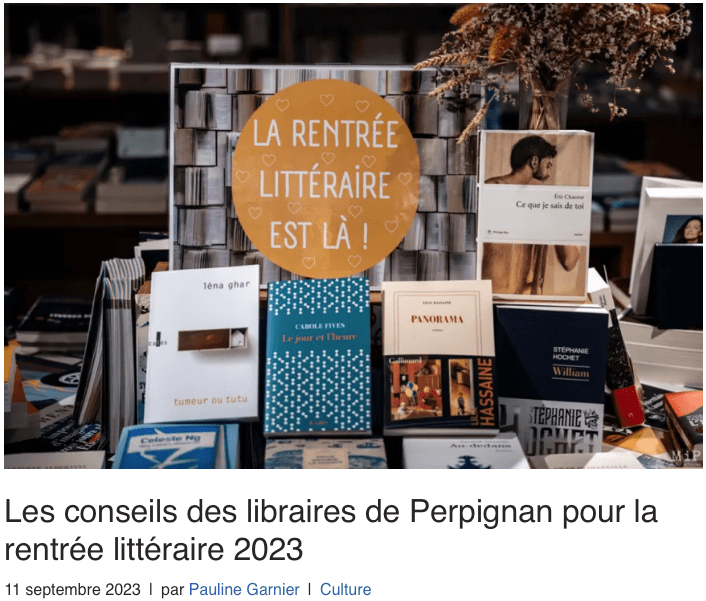 - Samedi 28 septembre 2024 — Lézignan-Corbières (11) — événement « Livre en Fête » à la médiathèque